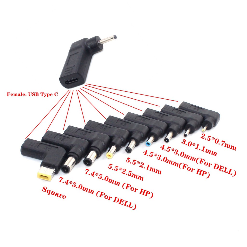 Laptop Charger Adapter Converter Usb Type C Female Dc Power Jack To 7 4 5 0mm 4 5 3 0mm 5 5 2 5mm For Lenovo Asus Shopee Malaysia
