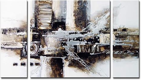 Amazon.com: Pinturas al óleo abstractas 100% pintadas a mano sobre lona, arte abstracto blanco y negro Noah Art, 3 pinturas de arte abstracto moderno para la pared, enmarcadas, para la sala y