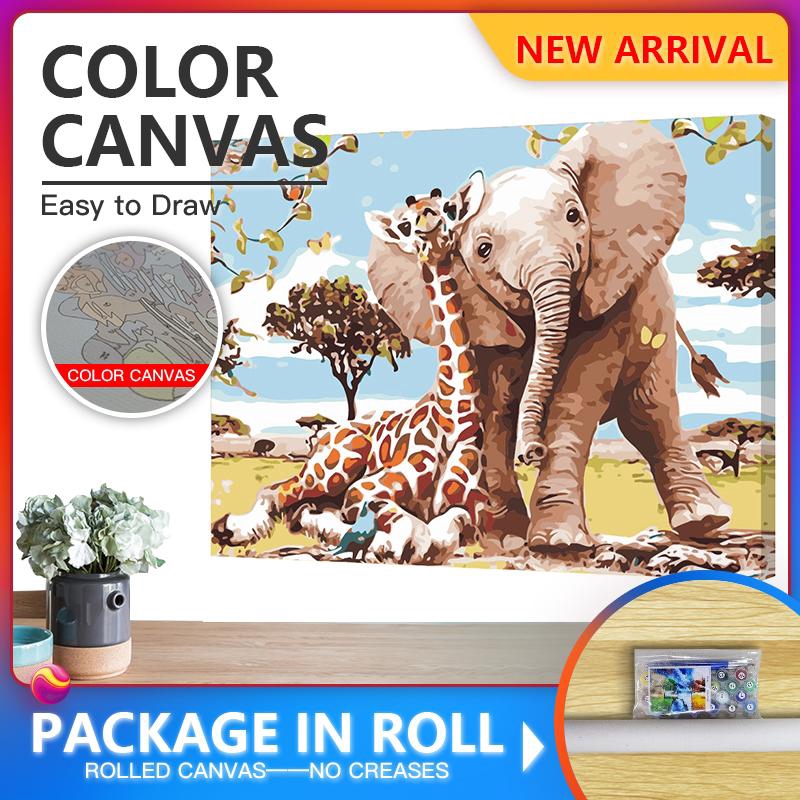 Diy Painting By Numbers Elephant Giraffe Animals Acrylic Paint On Canvas Kit Paint For Kids Room Unique Gift Home Decor Wall Art Painting Calligraphy Aliexpress