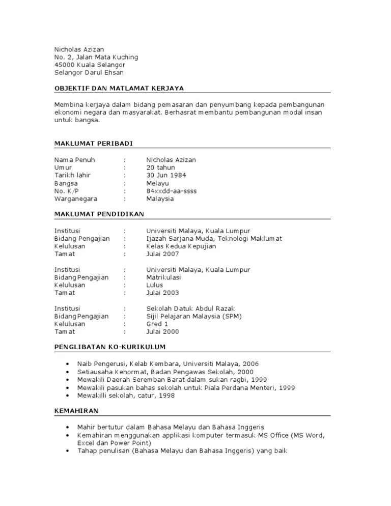 Contoh Resume Lengkap Terkini Dan Terbaik | Sample resume format, Resume pdf, Editable resume