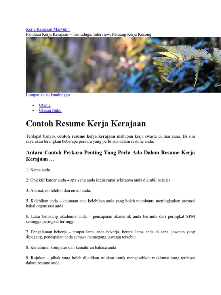 Bahasa Melayu Contoh Resume Kerja Kerajaan