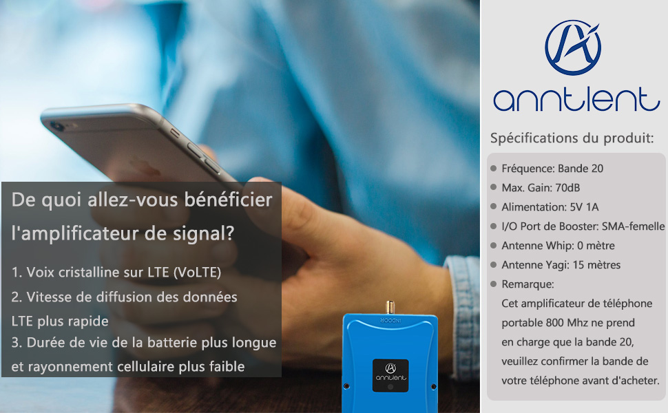 ANNTLENT Amplificateur de Signal 4G LTE 800MHz Répéteur Bousteur Téléphone Mobile Booster 4g avec Antennes Intérieure Extérieure Kit: Amazon.fr: High-tech