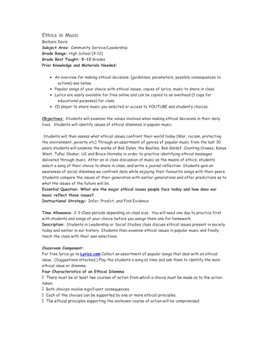 Ethics In Music A Study Of Ethical Dilemmas In Pop Music Teaching Resources